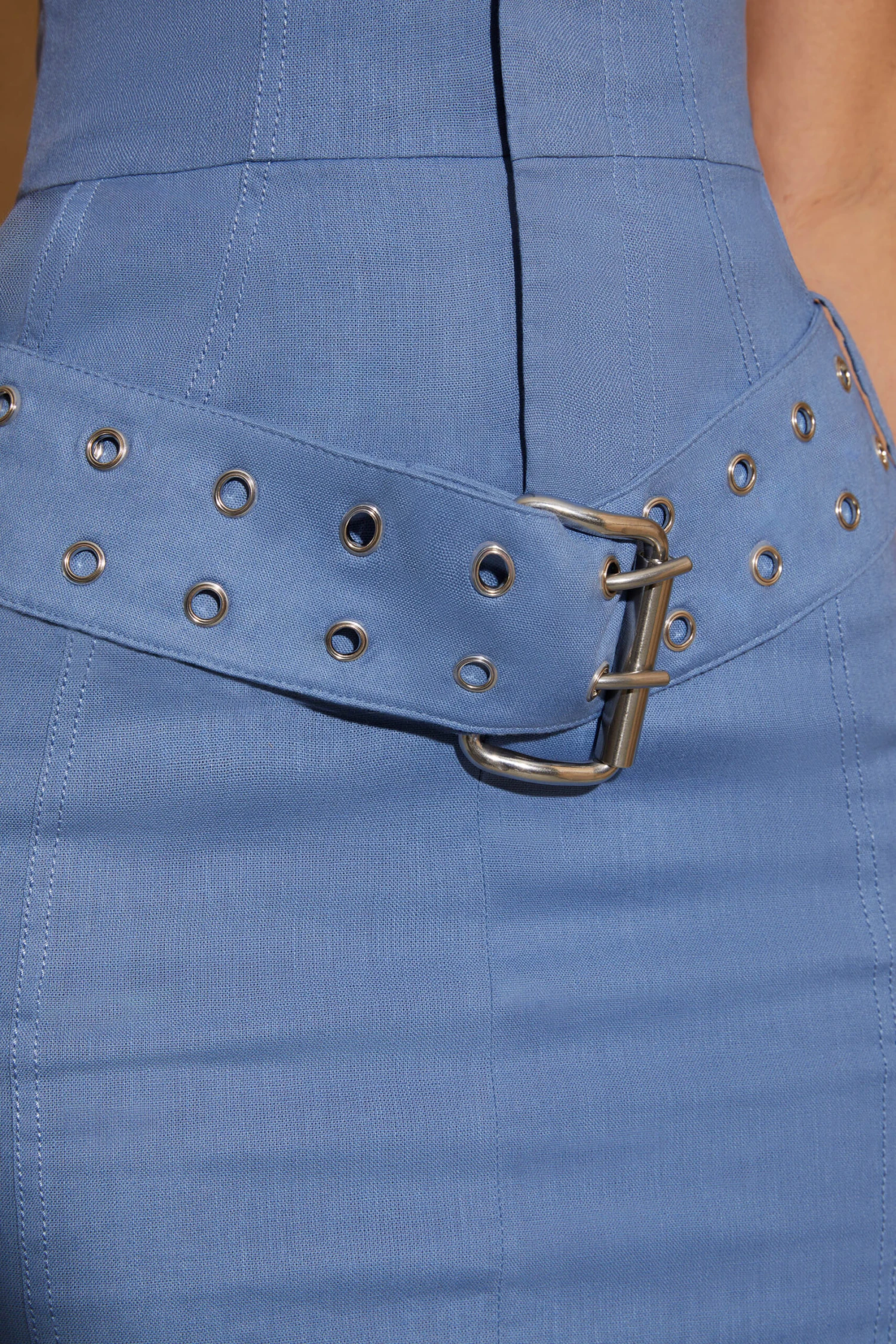 Created in our all new, lightweight linen fabric thatโs perfect for the new season, Koami is an all new mini dress design perfect for your next night out. Cut to a mini length with a bandeau neckline that exposes the decolletage, Koami is utility inspired with a belt loop shaped waistband at the neckline. Cut to a mini length with an oversized belt that drapes over the hips, the Koami mini dress is an edgy design created to elevate your party wear.ย
