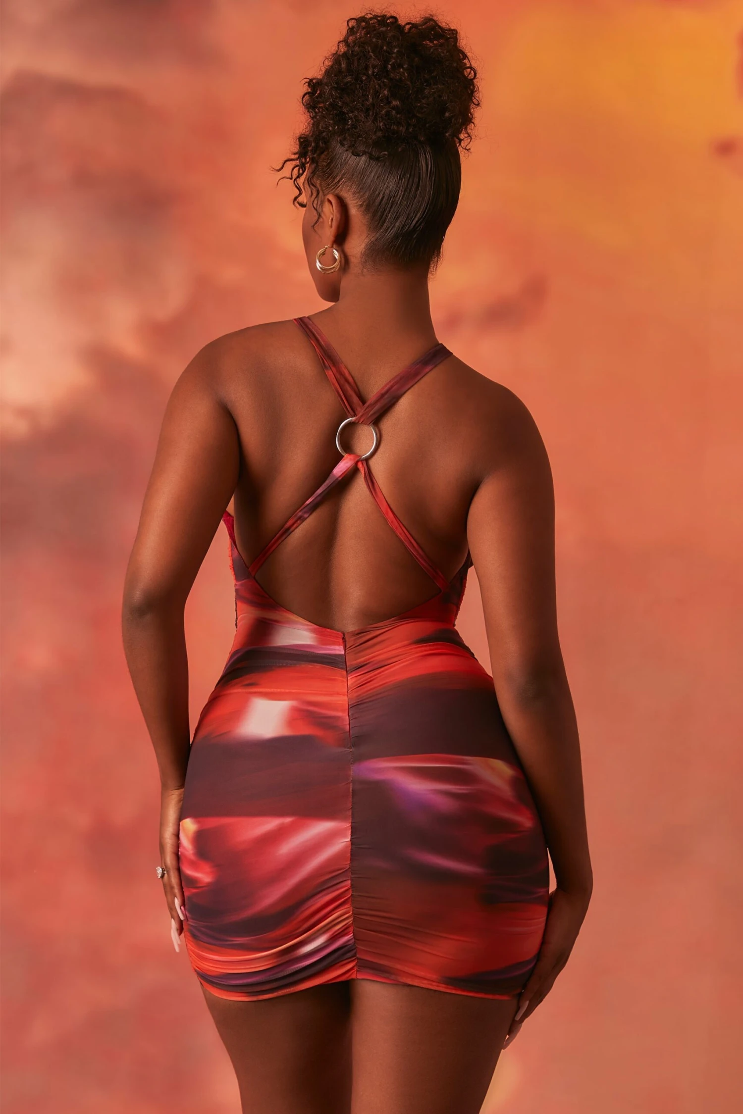 Transcend your look with Out Of This World bodycon mini dress. In galactic printed ruched mesh, our sleeveless mini dress features high crossover straps with a plunging keyhole neckline. Designed with a low back with ring detail, you’ll feel totally out of this world in this one, babe.