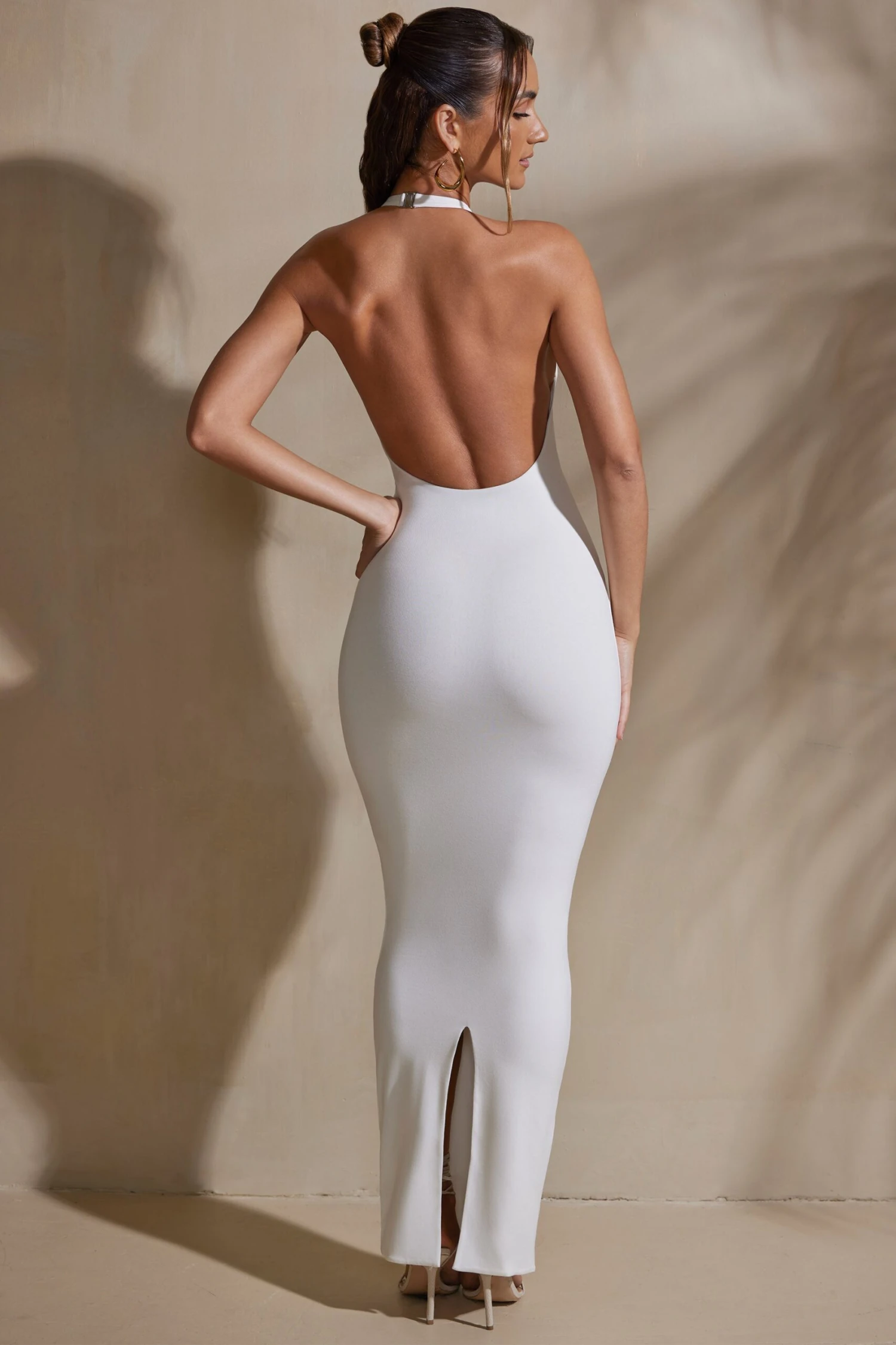 Understated yet undeniably scene stealing, the Tandi maxi dress is a heart stopping design that sculpts your silhouette for a chic and sleek evening look. Created from our dual lined, thick modal fabric that cinches your frame and accentuates your shape, the Tandi maxi dress is a sleeveless maxi dress with a sophisticated high, halter neckline. Tight cut to the body to ensure an alluring silhouette, the Tandi maxi dress is complete with a seductive low back that maximizes allure. Designed in two easy to wear, classic colourways, the Tandi maxi dress is a staple design youโll return to time after time.