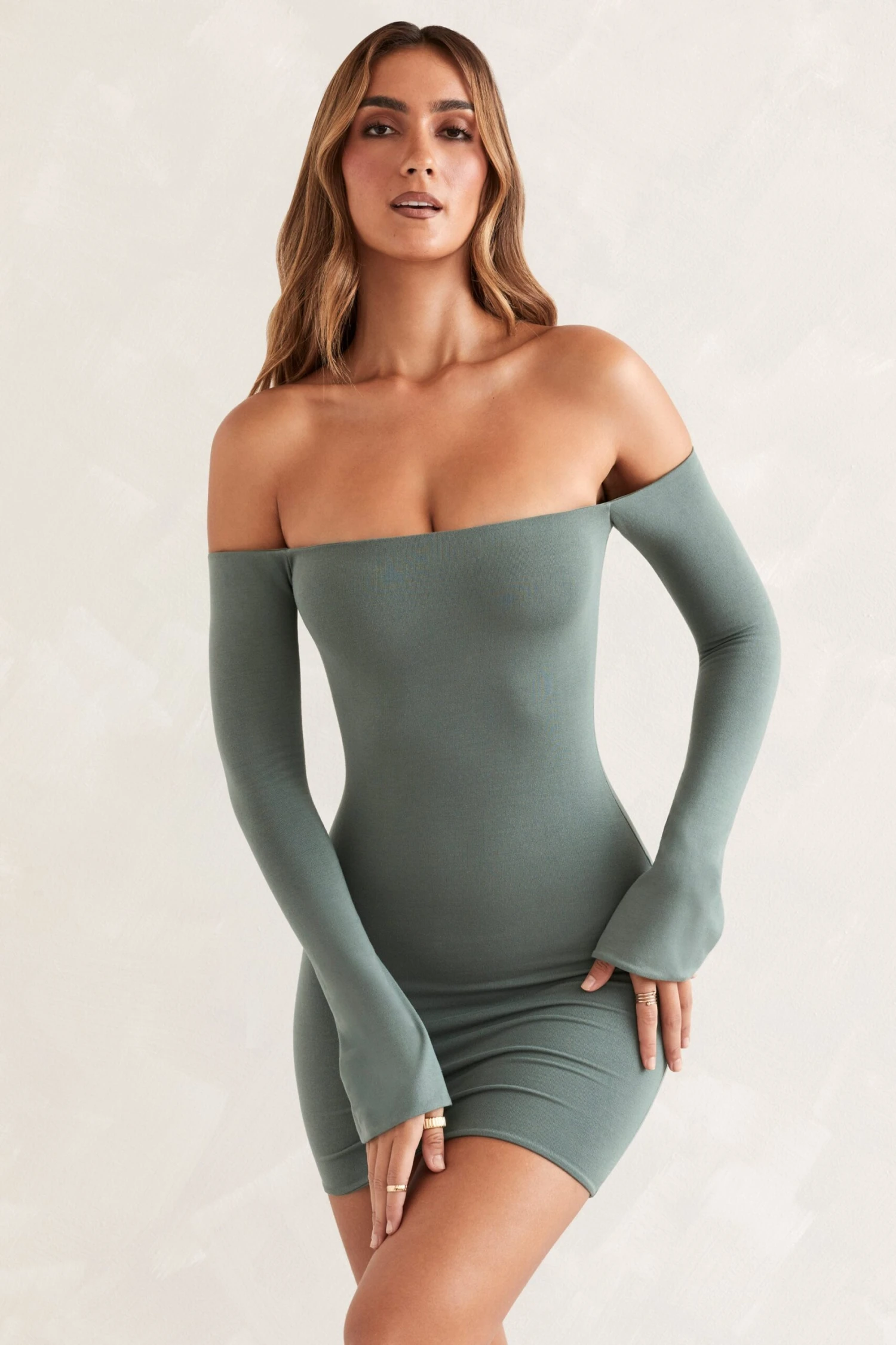 Chic and elegant, the Nasima mini dress is perfect for your next romantic date night. With a bardot neckline that exposes your decolletage and extra long flute sleeves, Nasima is all about the understated details that elevate your entire look. Cut to a mini length in our premium modal fabric, you can rely on the Nasmina mini dress to hug your curves like a second skin and create an undeniably enviable silhouette.ย